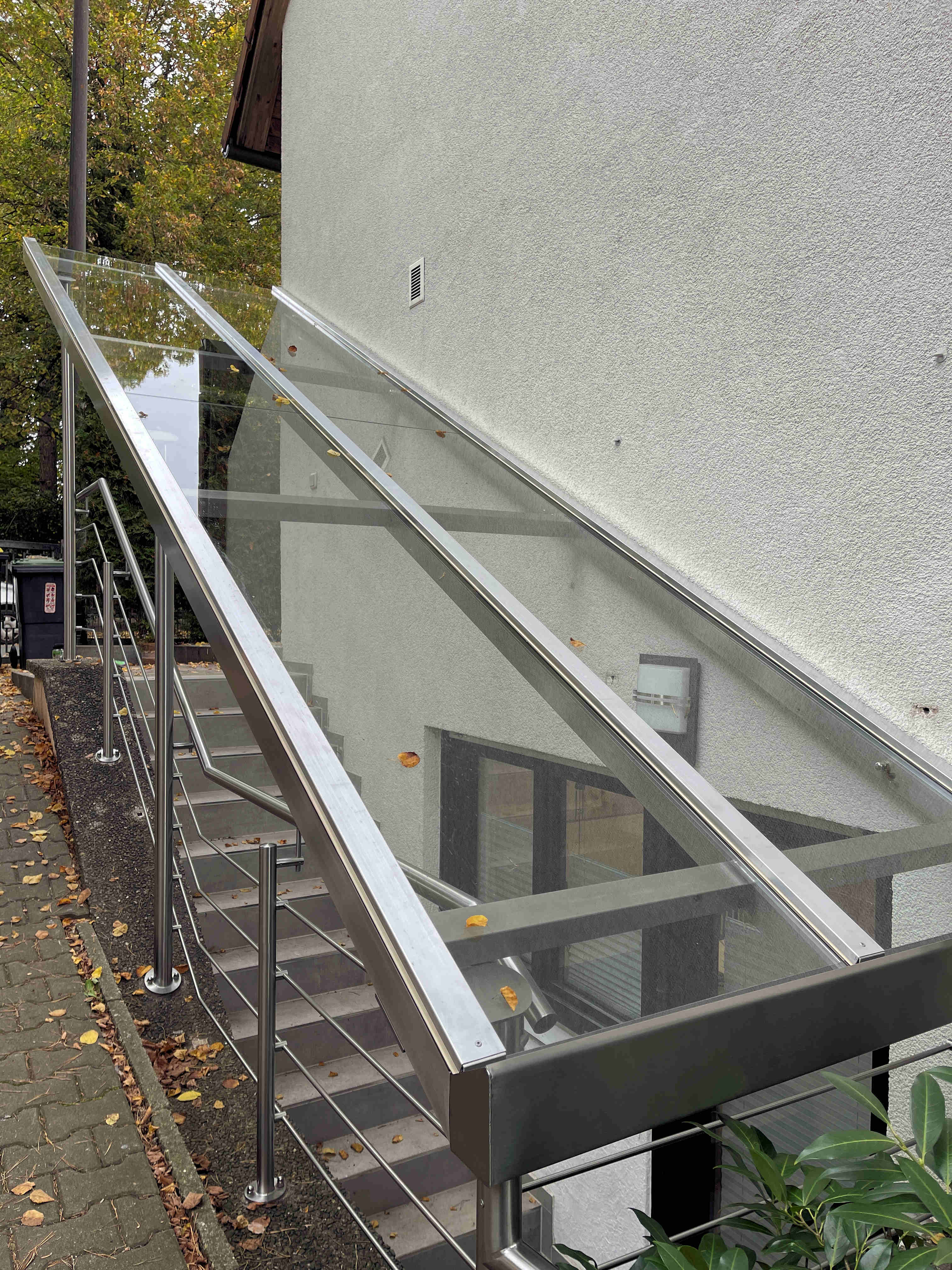 Kellerabgang Überdachung 25101-3 Gallerie: Überdachung Beschreibung: Kellerabgangs-Überdachung komplette Edelstahl-Konstruktion mit Verbundglas-Eindeckun