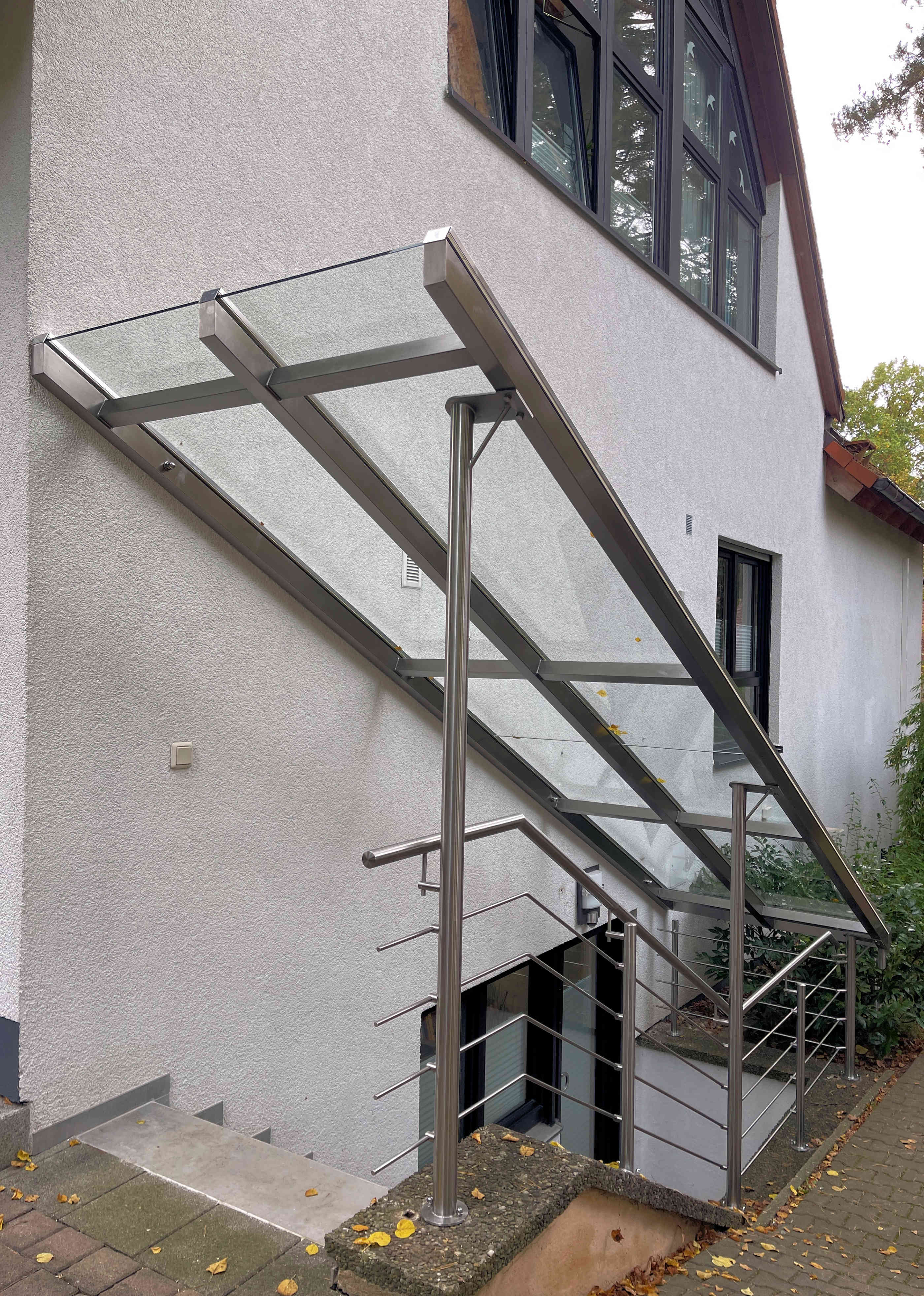 Kellerabgang Überdachung 25101-1 Gallerie: Überdachung Beschreibung: Kellerabgangs-Überdachung komplette Edelstahl-Konstruktion mit Verbundglas-Eindeckun